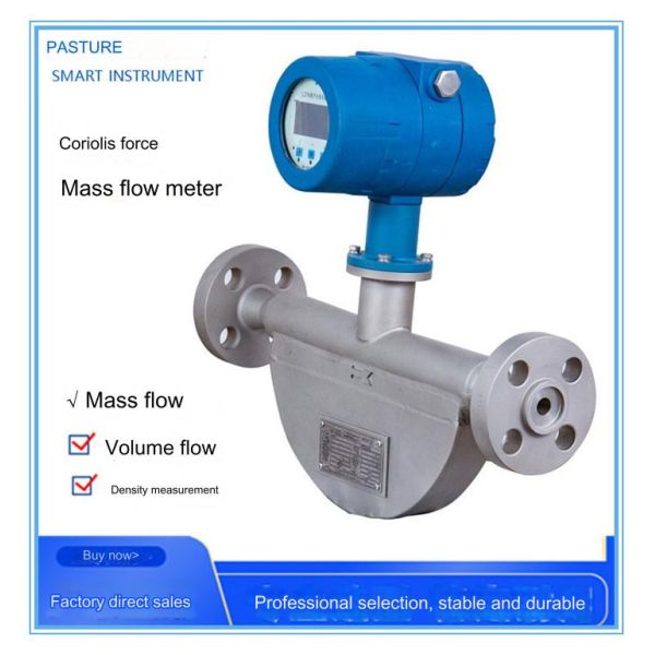 Coriolis force is a force proportional to the vector product of the linear velocity of the linear motion and the angular velocity of the rotational motion when an object is in both linear motion and rotational motion. The Coriolis mass flowmeter uses this principle. Using the magnet and coil assembly installed on the measuring tube, under the action of alternating current, the two parallel measuring tubes vibrate at their natural frequency. When fluid flows through the measuring tube, the Coriolis force causes the vibration of the measuring tube to shift in phase. The greater the mass flow rate of the fluid, the greater the vibration phase shift of the measuring tube. By detecting the vibration phase shift of the two measuring tubes, the mass flow value can be obtained.
